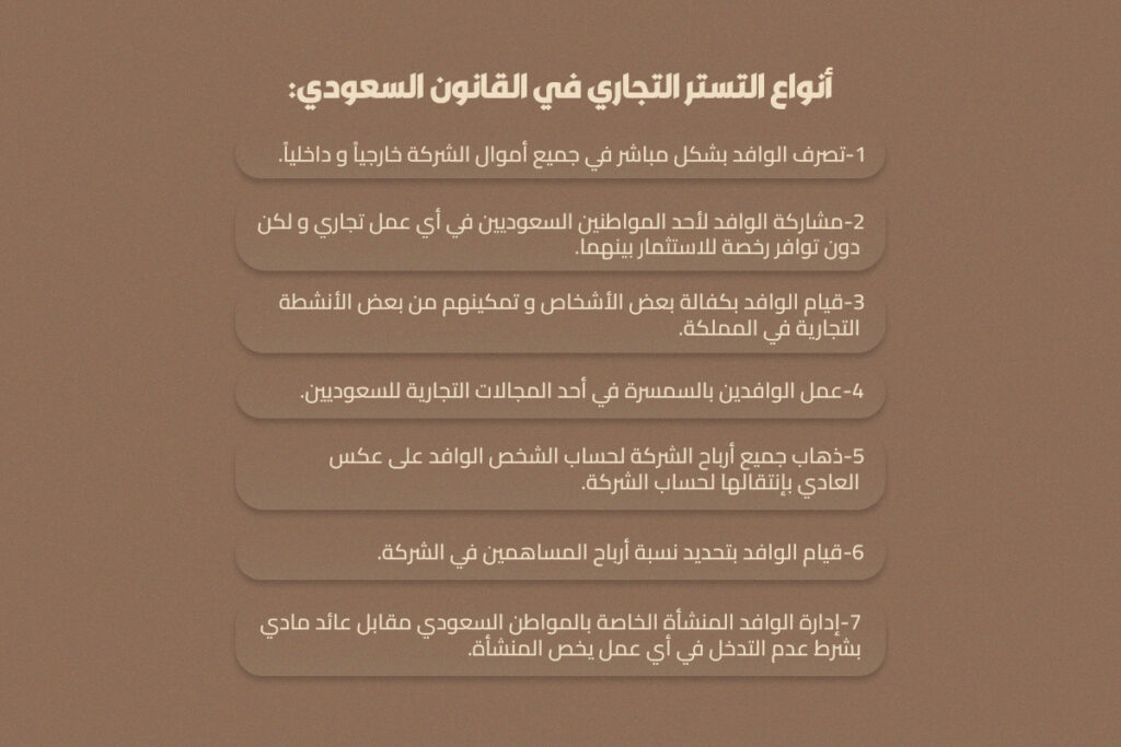 أنواع التستر التجاري في القانون السعودي: