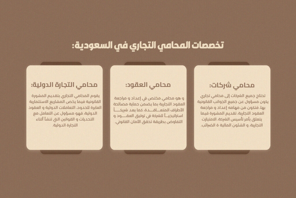 تخصصات المحامي التجاري في السعودية: